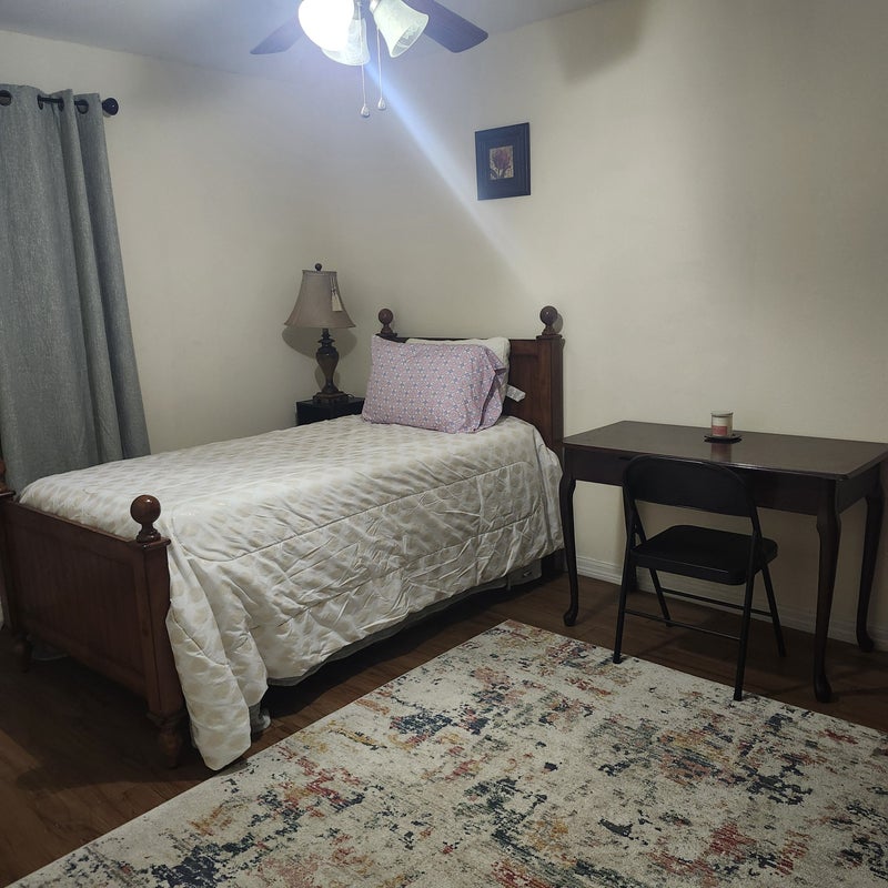 A clean, quiet, safe place to live. I have lived here for over ten years with no problems. Basic room with shared bathroom. twin bed, desk, dresser, and closet. quiet neighborhood, public transportation located at the entrance of the subdivision If needed.