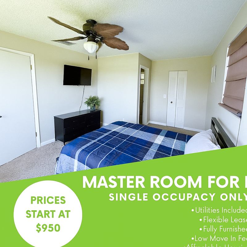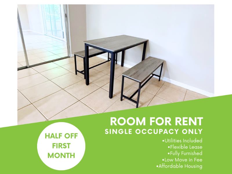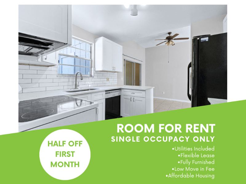 Room Features: Fully Furnished Includes a cozy bed, dresser, and more Entertainment Ready inch TV for your favorite shows & movies Modern Amenities Updated kitchen with new appliances Shared Kitchen & Patio Spaces Clean and wellmaintained w laundry room Prime Corner Lot Extra space, more privacy, and a peaceful atmosphere