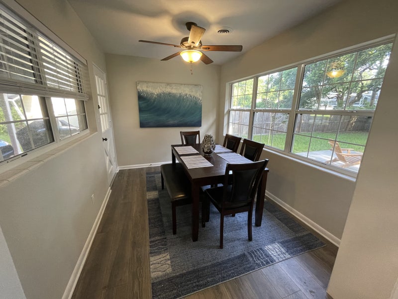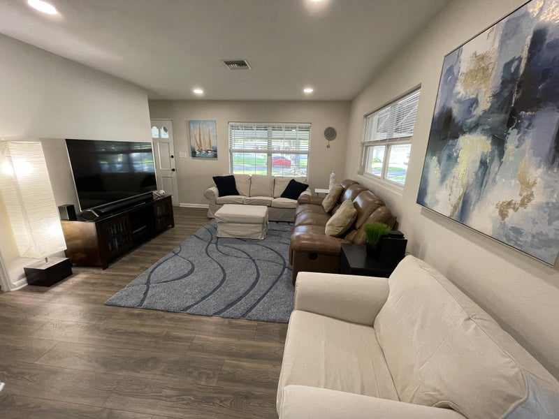 Home Features: - Carport Parking - Private semi fenced in backyard - Full kitchen and appliances - Laundry room with washer dryer and additional refrigerator/freezer - Hardwood floors throughout house - Living room with two sofas, big screen tv, and video game console - Google Nest - Shared office space - Small dog named Lovebug (owners) - Basic Cable, Netflix, HBO Max, Hulu, Disney Plus - Xbox