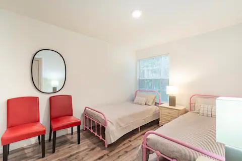 3-BD 2-BA townhome. You'll stay in a private bedroom with two single beds that can be separated or combined or just one single bed to suit your needs. walk in closet and big window, furnished, includes everything wi-fi, utilities, gym, swimming pool, tennis courts, You will share a bathroom with one other guest. The home accommodates a total of three guests, offering a quiet and friendly atmosphere. Suitable for solo person. Free parking available No gate access needed Located on the first floor no stairs one monthly is okay. Long-term stays are welcomed