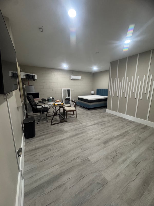 Spacious furnished private room with bathroom (converted two-car garage). Located in Kissimmee, 10 minutes from Orlando Airport and near Kissimmee downtown. Safe, gated community with pool and gym access.