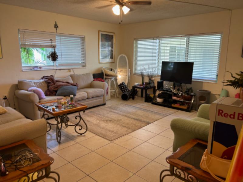 Matching students to share furnished , less than minutes from FAU, each room is $, condo is nicely furnished, super clean, neat and renovated with tile throughout, new bathrooms and kitchen with stackable WASHER AND DRYER INSIDE CONDO. Ceiling fans in all rooms. Can walk to Publics, Whole Foods, Mizner Park, beaches and public transportation to FAU. WASHER AND DRYER INSIDE UNIT.