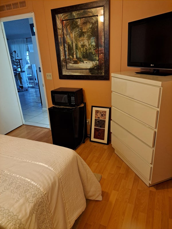Looking for a professional roommate. Room furnished /full sized bed, TV, mini fridge, walk-in closet. Only Light cooking, full size laundry machines in unit, safe and beautiful gated community. Heated pool in the winter, gym, jacuzzi, parking in driveway, electricity bill to be split usually is $120 in summer time. The beach is 8 minutes East. I am a single female looking for the right roommate, respectful and clean with an income and work outside. Background check required...no felonies
