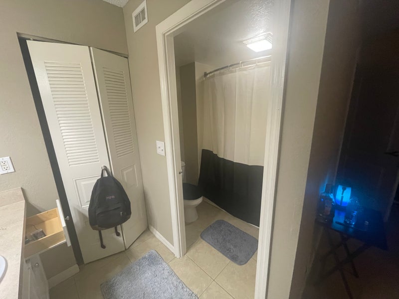 My roomate just got married so his master bedroom is available. Large room with bathroom . Apartment unit has washer and dryer in unit . Utilities are wifi , and electric. Very clean and quiet. Back ground and income check are required so be legit and cool