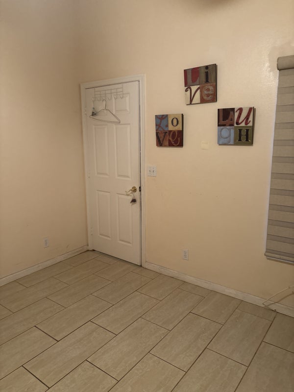 This one-bedroom partially furnished room features two nightstands and a lamp, providing a quiet and serene atmosphere. It is situated within a gated community that offers a range of amenities, including a gym, pool, hot tub, tennis court, and bike paths.