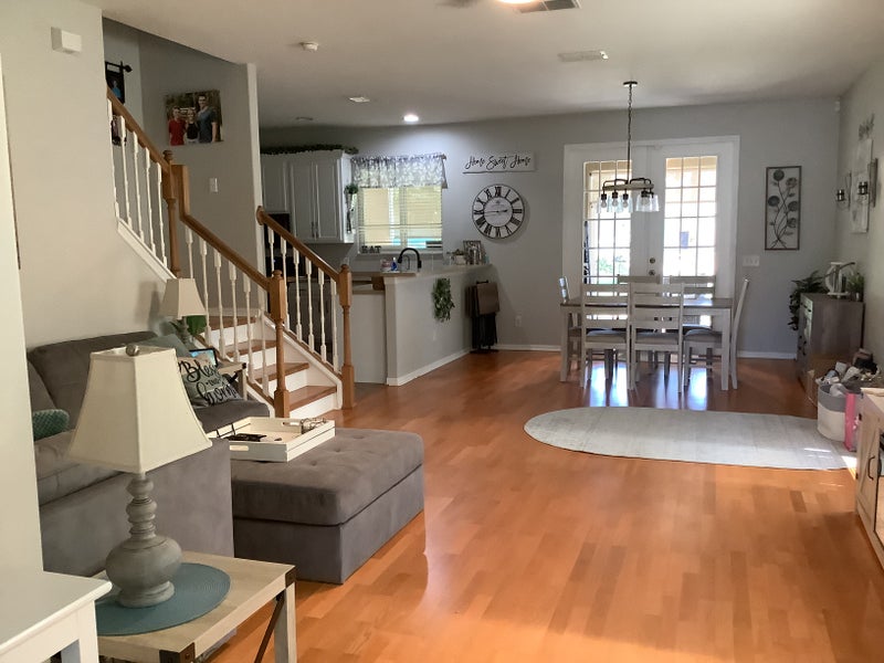 Downstairs is very open; living/dining/kitchen/half bathroom, all open with access to back screened patio. Living room with 75” Smart TV with Spectrum Cable is available to you anytime, as we are usually upstairs or out & about. I have one medium-sized VERY friendly older dog. For added safety, home has a Ring doorbell camera & an additional over-garage camera & motion lights. Front door is accessible by key, code, or fingerprint (if you want to use that function for easy access).