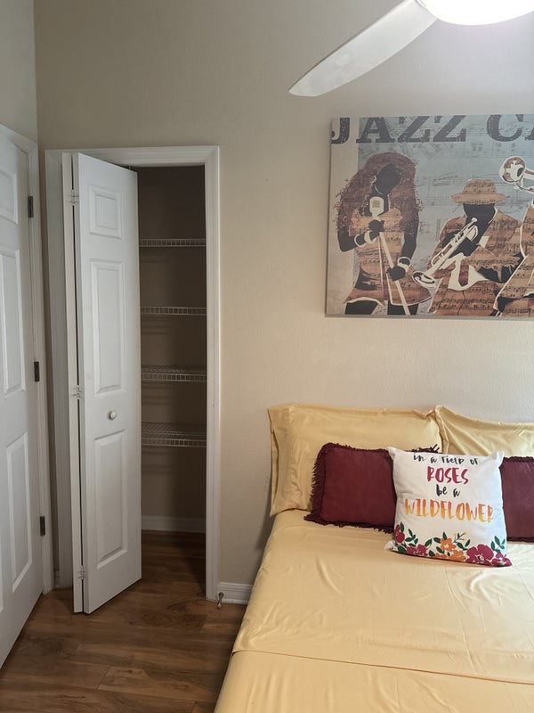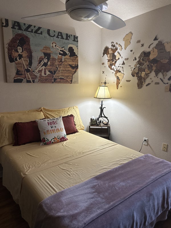 The room is furnished with a comfortable queen bed and shares a clean bathroom with one other room. Ideal for a quiet working professional who appreciates a calm, well-kept home with a relaxed and respectful vibe.