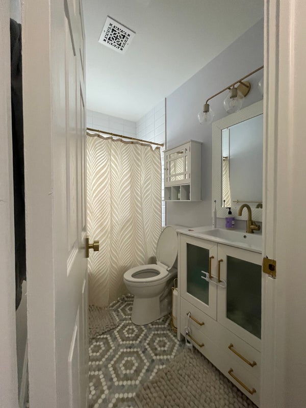 You would have primary use of the guest bathroom, which is conveniently located next to your room. The bathroom boasts a brand-new tub, extra hot water, a rain shower head faucet, a handheld faucet that is attached lower so you can easily wash your hair in the tub without having to get up, built in storage nook and extra shelves. There’s also a medicine cabinet and storage in the vanity. Now, here’s the caveat – this bathroom has the only tub in the house. I'm recovering from a car accident/injuries, so I need to be able to take an Epson salt bath once a day. I can do this at any time, so happy to work out times that you prefer I use it. I also won’t shave in your tub haha I just need to dump a ton of Epson salt and soak for 20-30 minutes once a day. Other than the bath, the bathroom is all yours.