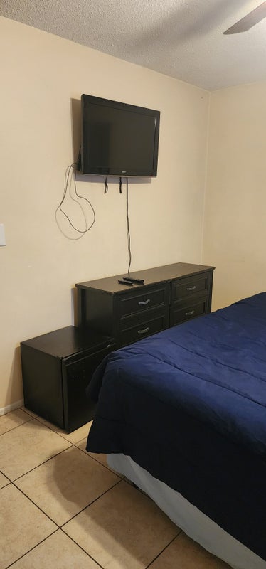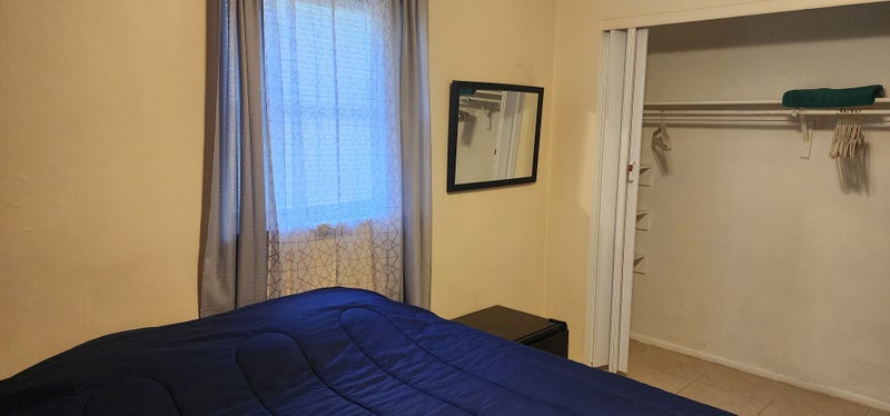 Private room fully furnished with its own TV and mini fridge, shared bathroom kitchen and living room, free parking and free to use the washer and dryer the room has king size bed won't work for one person or couple also separate beds available if willing to share the room each one pay $600 a month