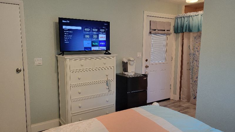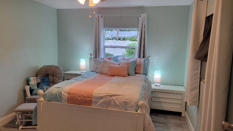 Studio on side of residential home with private entry & bath. Designed as an all female, "Golden Girls" residence! Classic white Coastal decor with Queen bed and dresser. Special touches of Air BnB style .miles to beach. Private driveway & walkway to your entry pool side entry. (Full use of gorgeous pool and lanai for work or relaxing). Cheery room (with sun blocking curtains) Includes apartment sized refrigerator, microwave, toaster oven and coffee service. All utilities and internet & Wifi, large smart T.V., Onsite laundry, all utilities (including dedicated Ethernet cable for work) and full use of designer kitchen in main home ALL INCLUDED IN PRICE! Enjoy the camraderie of other ladies in the dining area or relax in Serene sitting in lanai for morning coffee or watching the sunset! Seminole City Centre, St. Pete College & Library, shopping and Pinellas Trail just around the corner! Just bring your suitcase, unpack and enjoy! Storage shed and bicycle parking if needed.