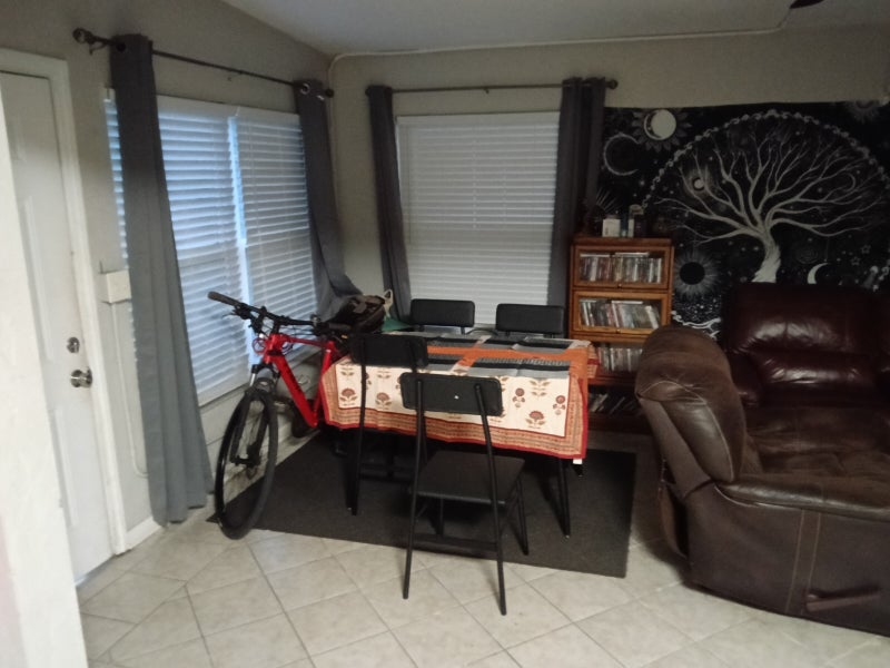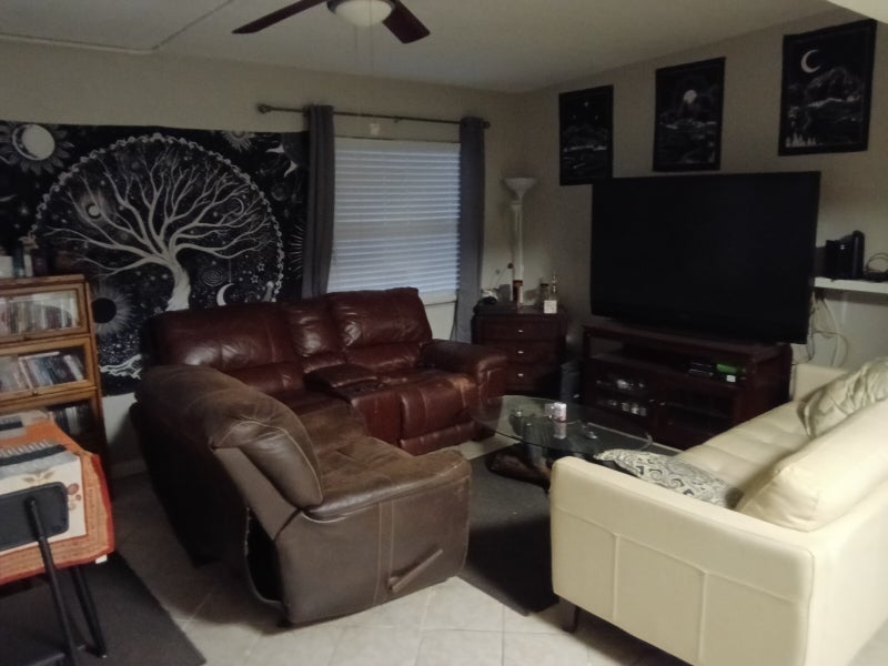 Hello my name is Amber my boyfriend's name is Blake we both live in this household in the same bedroom we have a room available for somebody preferably that works or makes income enough to take care of themselves and pay their rent. We don't judge anyone who drinks alcohol but we do highly advise any alcohol to be out of sight because we are recovering addicts. We have a cute large room available it's kind of small but it's the largest room that was in the house originally we also have a second bedroom that we may consider out renting right now we are using it as a storage room until we can figure out what we could do with what's in there from previous roommates. We have a large backyard small bathroom shared but it is convenience to 6 mi from downtown St Petersburg. We also have a meadowlawn Park if you like to fish it's a great area to have some time to yourself. We are close to bus stops we also have room for a car to be parked outside. We will consider a pet for a pet deposit fee. Utilities are not included around this time of year you're going to pay at the most $150 for both utilities water and electric maybe less. Rent all together for the house is $2,450 we split that between three people and then it makes it 817 a piece. When you move in you do what you want no curfew no being told how to live your life if you do have people come over just let us know ahead of time so we can make sure everything is tidied up and we can remove ourself from the area as intended so you can visit with your loved ones. Internet is going to be free on the house there's no expectance to help pay the bill we do have an extra TV not sure if it works internet is fiber frontier with Verizon super high speed and can get a higher gigabyte depending if you work at home or not. We are a couple that don't interact with a lot of neighbors a lot of people you say to ourselves reply it and we don't like trouble he would accept the same out of our future roommate just put together and chill vibing this house is friendly my boyfriend smokes I don't but it is to be done outside not inside the house we have three baby quails in the backyard we are raising them so we're able to eat eggs and stay on a healthy diet if any of this sounds interesting you please hit me up I have free messaging by the month. Looking to move somebody in ASAP there is a $50 background check fee but I'm going to keep that on the DL until the middle of the month I would like to get to know my roommate before going through with the other background check living with them is going to let me know if their ideal candidate for the next year or not