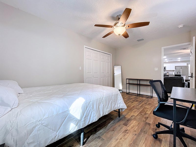 Private furnished room for rent. This fully furnished room is designed for comfortable, hasslefree living and includes a queensize bed, dedicated workspace, personal electronic lock with unique access code, and a closet for storage. Perfect for working professionals seeking a clean, secure, and affordable place to call home. All utilities are included, along with highspeed WiFi, giving you one simple monthly payment. Residents enjoy access to a fully equipped shared kitchen, spacious common areas, and an onsite washer and dryer. The home is professionally cleaned in shared spaces to maintain a comfortable living environment. Conveniently located near major employers and everyday essentials: • Downtown Lakeland – 6 minutes • Lakeland Regional Health – 9 minutes • Florida Polytechnic University – minutes • Public transit nearby Ample parking is available onsite and on the street. This is a quiet, wellmaintained home with single occupancy rooms only. House rules are in place to ensure a respectful and comfortable shared living experience for all residents. $6 per week. Room rate includes all utilities, high speed WIFI, free laundry access, and Teladoc service. PROPERTY ID: 4