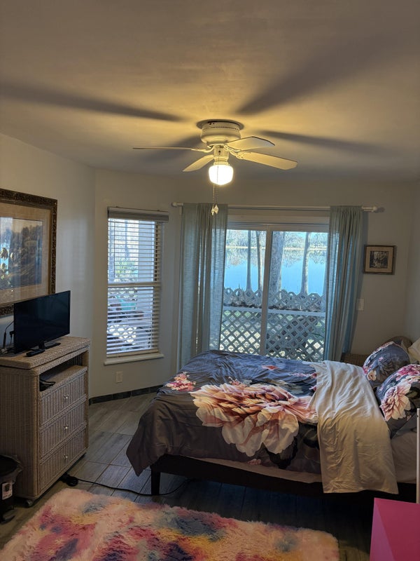Quiet and peaceful master bedroom and master bathroom in 2/B 2/B condo in Lake Mary/Sanford. Easy access to I-4 and walking distance to Seminole State College. (1.5 miles to Sunrail station to UCF and downtown Orlando). Room has own entrance onto patio with unobstructed lake view. Includes reserved covered parking. Other amenities: monthly professional maid service, washer/dryer, full kitchen and living room space. Safe and clean neighborhood with tennis courts, swimming pool and exercise facilities. Other roommate occupies the guest bedroom/bathroom and is a frequently traveling grandparent. Often gone for weeks at a time. Easy showing. (Student discount in exchange for housekeeping. Discount for non use of car port.)