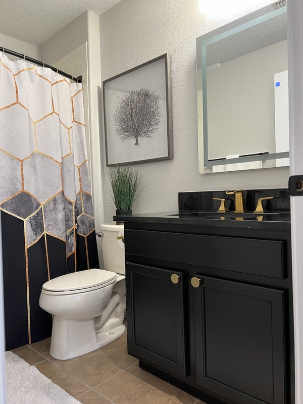 The private bedroom is on the 1st floor of our townhome, which we currently live in. It features a king-sized memory foam bed, a full-size closet, a full bathroom with a tub, a mini fridge, microwave, coffee maker, Wi-Fi, smart TV, a private balcony, and a community pool/fitness center.
