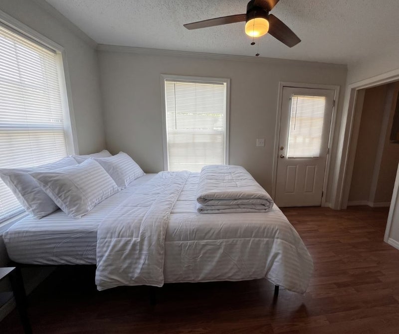 Enjoy a clean, fully renovated professional room for rent in West St. Augustine, just 7 minutes from Downtown St. Augustine by car or bike. This move-in-ready space features brand-new flooring, fresh paint, and all-new furnishings including a comfortable bed, nightstand, desk, chair, and fresh mattress with new bedding. Residents have access to a full shared kitchen equipped with a large stainless steel refrigerator, microwave, stove, and ample space for cooking, along with two updated bathrooms and a brand-new washer and dryer for convenience. Parking is available, and the rental process is simple with no credit check required—just a $50 application fee and $100 refundable deposit to get started. Perfect for professionals seeking a clean, convenient, and hassle-free living space close to everything St. Augustine has to offer.