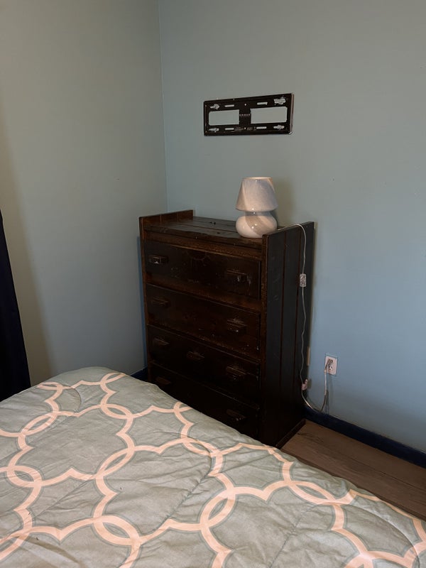 Spare furnished room for rent 800 a month 400 refundable deposit as long as room and property are not damaged. Utilities included. Off street parking Close to shopping Enclosed patio Must like dogs I have a corgi