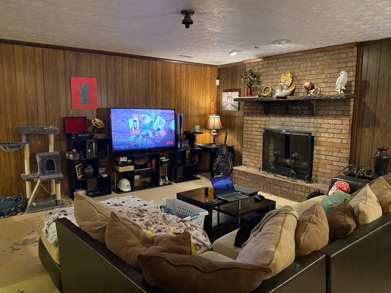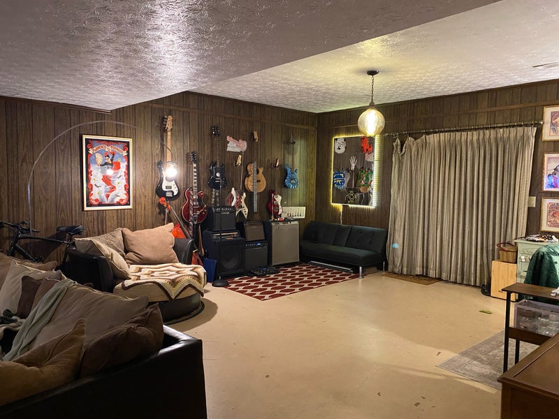 About the house: We have a movie theater, home gym, and bar in the basement- upstairs there’s a conversation pit styled living room (we love a 70s house), communal coffee bar, big patio, hosting space for occasional shindigs, washer and dryer and a sizable storage space in case you need it (storage room is about 130sqft)