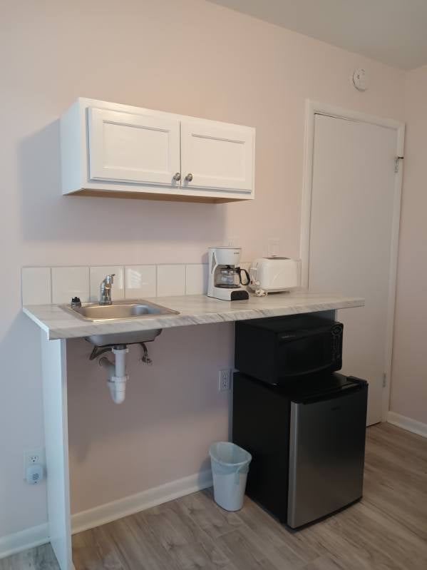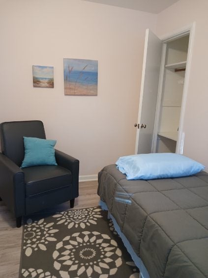 One bedroom , 1 bath with private entrance. Fully furnished. Toaster, coffee pot, small frig, microwave. Great for a traveling professional. Private property and peaceful. No drugs.