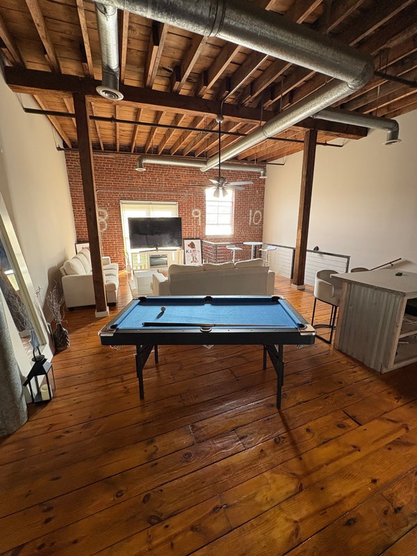 1500sq two level loft. Located downtown villa rica on the strip with restaurants and bars outside ur door. Great neighborhood walking distance to every thing. Large bedroom downstairs and huge entertainment area upstairs.