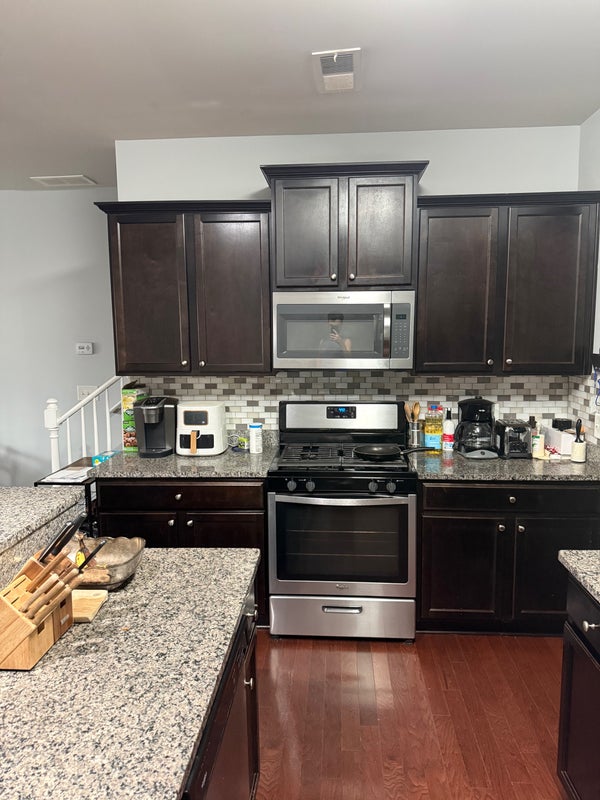 The house is a is a very quiet middle unit townhouse with a basement, porch, and patio! It is right off of Highway 92 and is a 13 minute/5.9 mile drive to KSU. We are all the way in the back of the community next to a perennial stream, so if you are into peaceful nature vibes this is the place for you! Both available rooms will be unfirnished, living room is fully furnished with couches, wall art, TV, plants, etc. We have complimenary air frier, Keuerg coffee maker, toaster, crock pot, microwave, and a gas stove & gas oven. Only thing missing is a rice cooker 😂