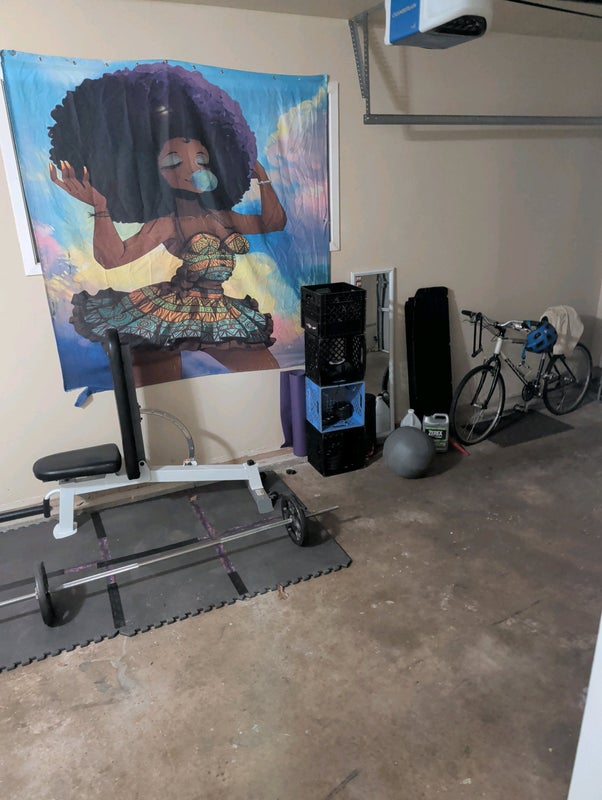 A garage that I'm converting into a home gym.