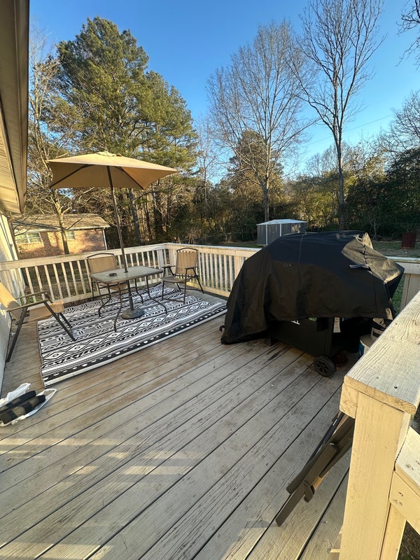 The house is located in a quiet safe neighborhood outside of Atlanta. The house is fully furnished with laundry, living room, dining room, and kitchen.