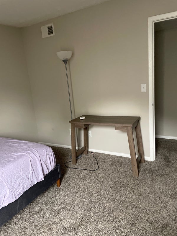 This room is kind of small but it does come with a bed and dresser if you need it. It also has a huge bathroom separate shower and tub. Shared living room space but welcome anytime to hangout. I do work a lot so you will have the place to yourself most of the time.