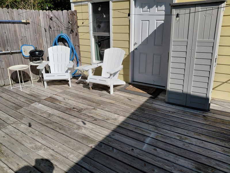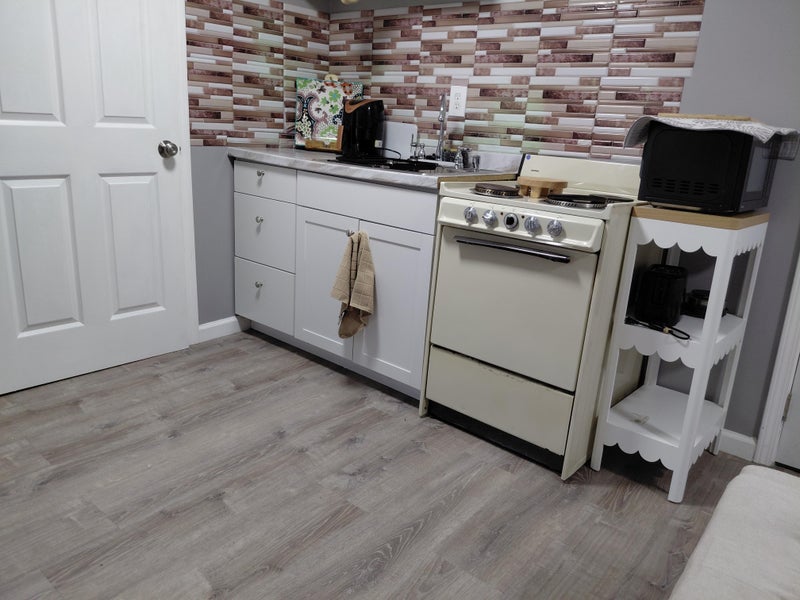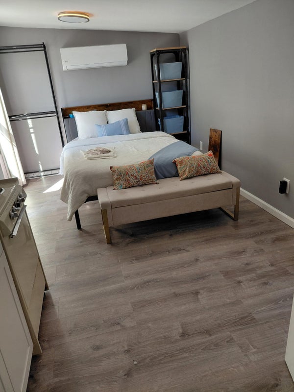 300 Square feet studio with a full kitchen. Private entrance, this space is not shared. The outside areas are shared such as deck, pool, pergola, and firepit area.