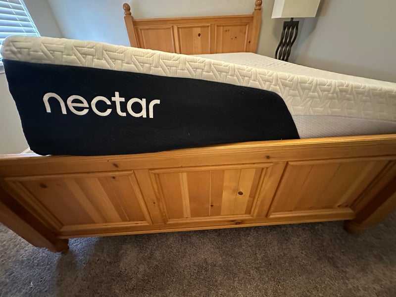 The bedroom features queen size bed with Nectar mattress, nightstand and dresser.