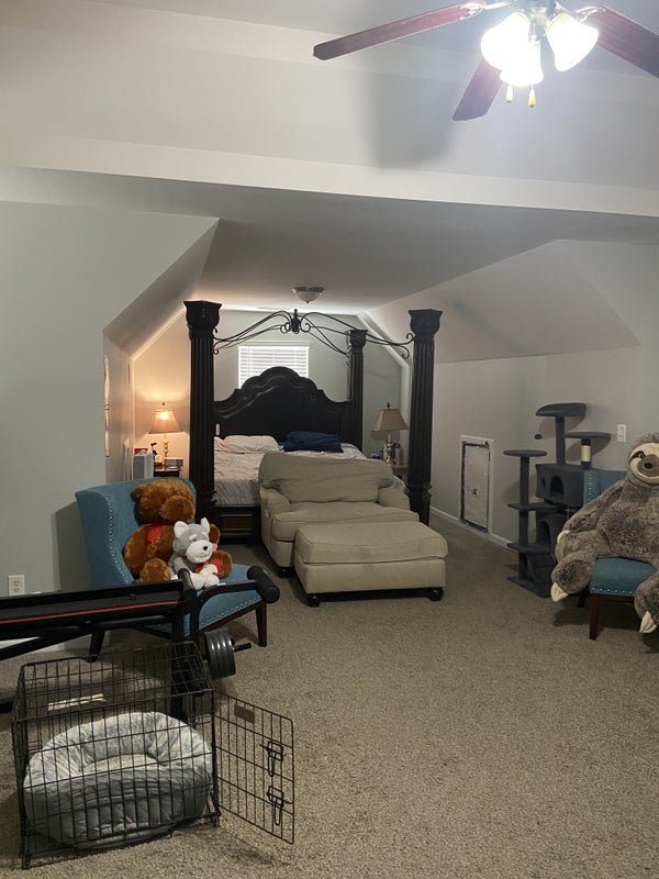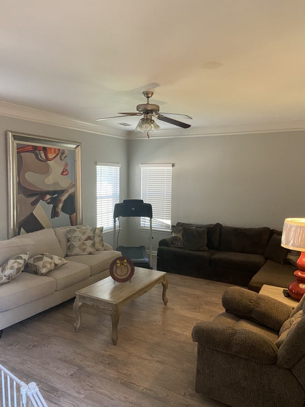 Located upstairs in the front of the home, beautiful natural light with a nice window view, furnished, and move-in, ready, shared bathroom, perfect for someone who wants a comfortable simple set up.