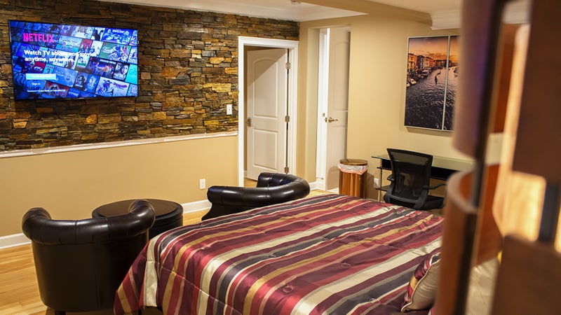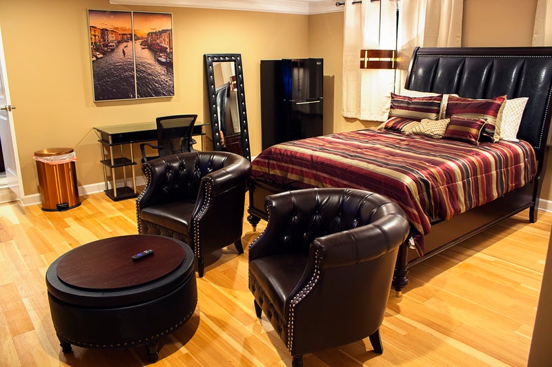 Private Suite includes: In-suite refrigerator 55" TV High speed wi-fi Xfinity Cable Netflix Seating area Full kitchen, dining lounge, and laundry. Utilities included