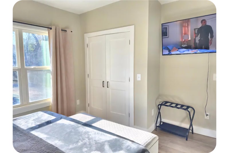 This private guest room is located on the main level of a quiet, updated home and features one king bed and a private, attached bathroom. It is the only bedroom and bathroom on the first floor, giving it a suite-like feel and added privacy from the other guest rooms upstairs. Ideal for traveling professionals or guests looking for comfort, privacy, and a calm stay near hospitals, Downtown, and the airport