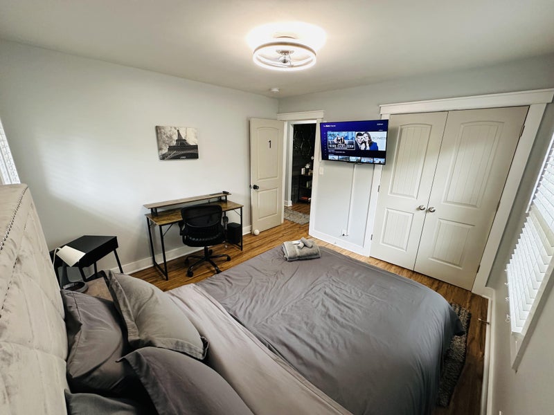 Private furnished room for rent. Welcome to this beautifully designed openconcept home! The large master bedroom offers a private bath, while two additional bedrooms share a spacious full bath with double sinks. Each room features a ” office desk, ergonomic chair, and a ” Roku flatscreen TV. Enjoy the fully stocked kitchen with upgraded quartz countertops and the dining room table perfect for meals. The communal living room has a flatscreen TV for relaxing. All rooms come equipped with highspeed, ultraquiet fans. The home is situated on a quiet street, just mile from Marta, 1 mile from I, and 2 miles from I. Laundry facilities, a security system with exterior cameras, and highspeed internet are included. Expect an Airbnblike experience with toptier amenities—your comfort is our priority! $8 per week. Room rate includes all utilities, high speed WIFI, free laundry access, and Teladoc service. PROPERTY ID: