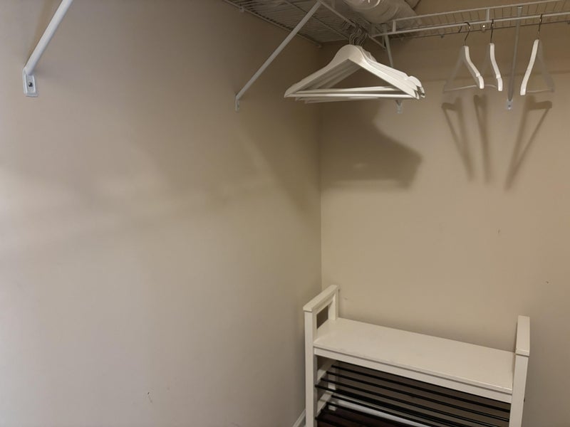 The suite includes: • A private hallway • A private full bathroom • A large walk-in closet