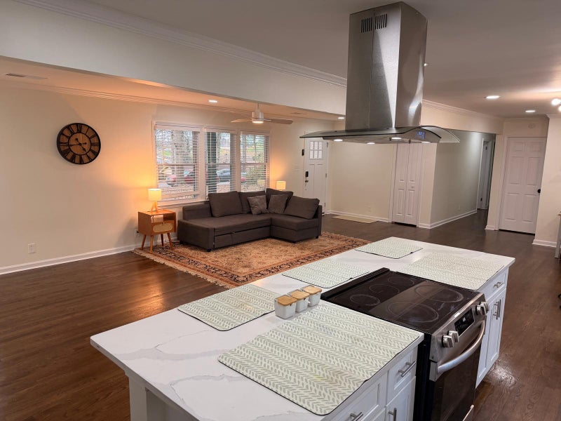 Welcome to your next home in the heart of College Park, Atlanta — a beautifully renovated, fully furnished private room designed for the modern professional on the go. Your room features a plush queen bed with fresh bedding, wallmounted smart TV, ceiling fan with lighting, a dedicated study desk and chair, and warm ambient floor and bedside lamps. Large windows bring in plenty of natural light, and keyless entry via your own personal door code keeps your space private and secure at all times. The shared spainspired bathroom is fully renovated with floortoceiling marble porcelain tile, soaking tub, designer mosaic shower niche, and a floating modern vanity — a fivestar experience after every long shift. Enjoy inunit access to a brand new fullsize LG washer and dryer — no laundromats, no coins, no waiting. The gourmet openconcept kitchen features quartz waterfall countertops, stainless steel appliances, a professional range hood, and white shaker cabinets — fully equipped and ready to use.