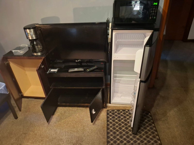 Microwave and refrigerator in the room washer and dryer in the basement. Internet access patio bus runs on the street