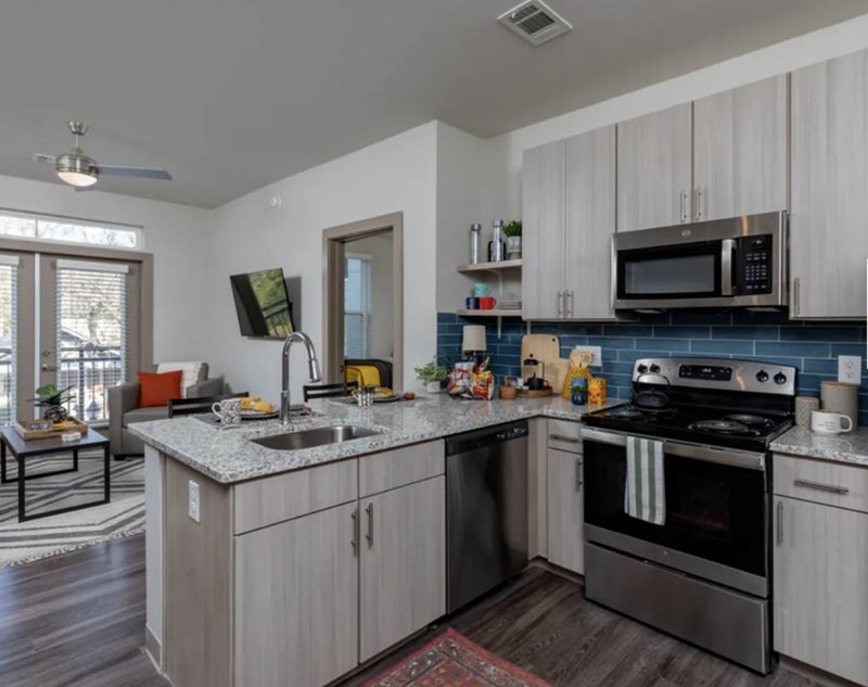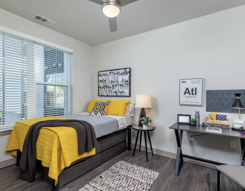 New apartment complex Midtown! Room A is available for sublet immediately at your preference of move-in date. You will be living with 1 other person. Rent + utilities is $1399/month with utilities included. Catalyst Midtown 2 bedroom 2 bathroom B2 floorplan. The apartment comes fully furnished along with the option to buy a parking pass for $125. The apartment has a washer and dryer. The complex has a complimentary gym, yoga room, game/lounge room, plenty of study rooms, and a pool. Lease is until 7/26/25. The unit will be completely cleaned by the complex prior to sublet. I will refund your application fee of $160 if your application is approved and you have signed the rental agreement. Catalyst Midtown amenities: • Fully furnished • Private bedrooms and bathrooms • Stainless steel appliances • Granite countertops • Private balconies • High speed internet included • Electricity and water/sewer included • Elevated resort style pool • Maker space work lab • Commercial Style fitness center • Rooftop sky deck • Cyber lounge and Business Center with free printing • Private study rooms • Parking garage with gated access • Secured bike storage • On-site courtesy officer (Kitchen interior photo isn’t accurate see floor plan photo for reference)