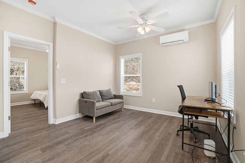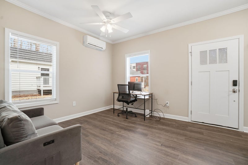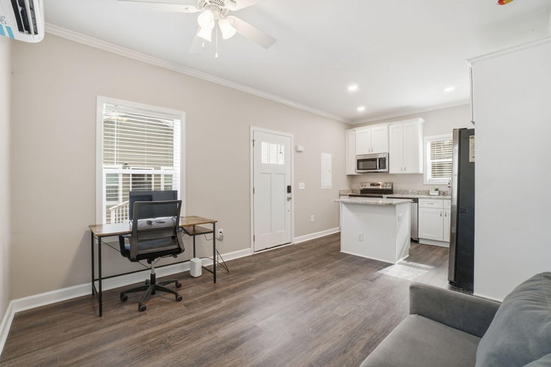 Private furnished room for rent. ENTIRE HOME! This is a single separate home on a site with 4 homes. This private home features one bedroom, one full bathroom, a new highend kitchen and open living room. This beautiful home was built new in . Come home to your own private sanctuary and take a load off. It's your space! FULLY FURNISHED! Bedroom features a queen bed. Living room includes a Smart TV, love seat, and workfromhome desk. Kitchen + cleaning supplies are provided and common areas are cleaned monthly! There is one reserved parking spot in the driveway and free street parking. Security cameras in front and back for peace of mind. The location is Westside! Just minutes from the Atlanta Beltline, MercedesBenz Stadium, Midtown and Downtown. The Bankhead MARTA station is literally one block away, and there is a MARTA bus stop ("" line") at the top of the street. $9 per week. Room rate includes all utilities, high speed WIFI, free laundry access, and Teladoc service. PROPERTY ID: 1