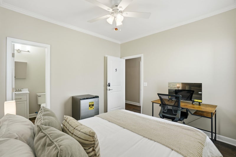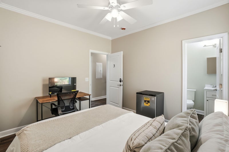 Private furnished room for rent. This beautiful home was built BRAND NEW in and features 5 spacious rooms. EACH ROOM HAS A PRIVATE BATHROOM! Come home to your own private sanctuary and take a load off. It's your space! This home is for professional people working hard to achieve their goals. We live by the Golden Rule: Treat others as you want to be treated! EACH ROOM FEATURES: Private ensuite bathroom Queen bed Personal 4,1cu mini fridge Smart TV with Roku Desk + chair workstation Reachin closet Ceiling fan The walls in the home are double insulated for extra soundproofing and privacy. Common area includes a full kitchen, washer + dryer, and peaceful front porch. Kitchen + cleaning supplies are provided. Common areas are professionally cleaned monthly! Parking is free on the street and there is one offstreet space behind the house. Security cameras in front and back for peace of mind. The location is Grove Park next to the Westside Park and Atlanta Beltline! Just minutes from MercedesBenz Stadium, Midtown and Downtown. There is a MARTA bus stop ("" line") along the street, and the Bankhead MARTA station is LITERALLY only one block away! $4 per week. Room rate includes all utilities, high speed WIFI, free laundry access, and Teladoc service. PROPERTY ID: 8