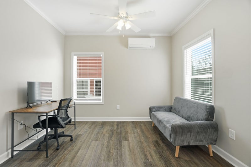 Private furnished room for rent. ENTIRE HOME! This is a single separate home on a site with 4 homes. This private home features one bedroom, one full bathroom, a new highend kitchen and open living room. This beautiful home was built new in . Come home to your own private sanctuary and take a load off. It's your space! FULLY FURNISHED! Bedroom features a queen bed. Living room includes a Smart TV, love seat, and workfromhome desk. Kitchen + cleaning supplies are provided and common areas are cleaned monthly! There is one reserved parking spot in the driveway and free street parking. Security cameras in front and back for peace of mind. The location is Westside! Just minutes from the Atlanta Beltline, MercedesBenz Stadium, Midtown and Downtown. The Bankhead MARTA station is literally one block away, and there is a MARTA bus stop ("" line") at the top of the street. $9 per week. Room rate includes all utilities, high speed WIFI, free laundry access, and Teladoc service. PROPERTY ID: 1