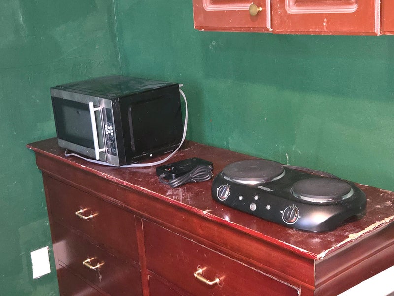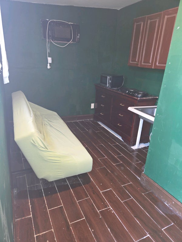 Includes: Dresser, Microwave, portable electric stove, space heater, window AC Unit, Mini fridge and futon sofa. Toilet and Shower. No Washer and Dryer Hook up. Ongoing renovation, more features coming soon.