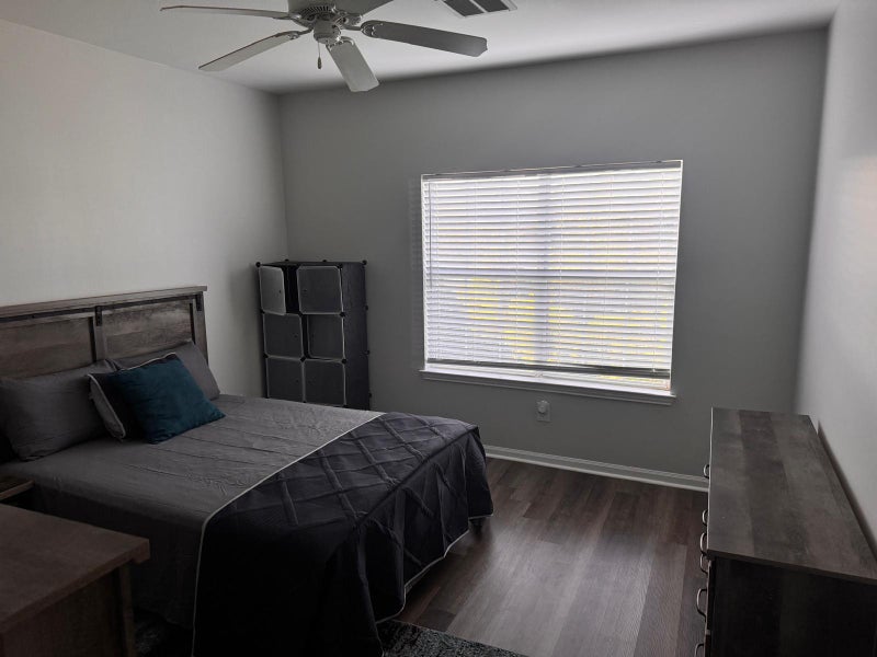 Renting half of a furnished 2 bed 2bath condo. Contains Queen bed, dresser, armoire and nightstand with private in-room walk-in closet. Private linen closet and bathroom. Fully furnished Living room, kitchen, and laundry room are shared spaces.