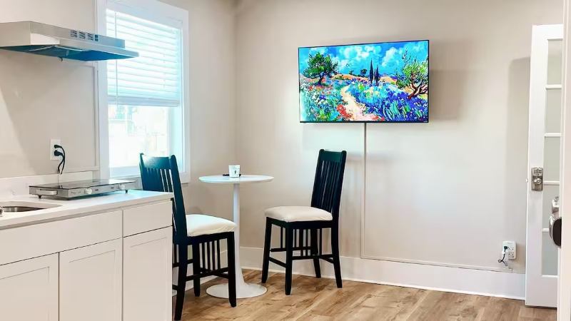 Rent your own studio bedroom! This adorable furnished room has its own private kitchen and TV in a shared home with a semi private entrance. You get the best of both worlds in this space which is perfect for young professionals, nurses, or students looking for a beautiful home within a community.