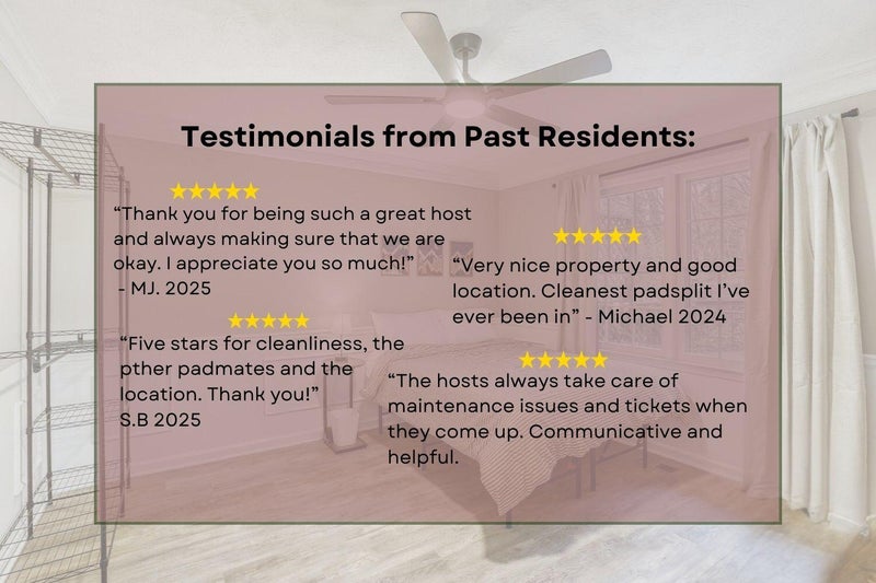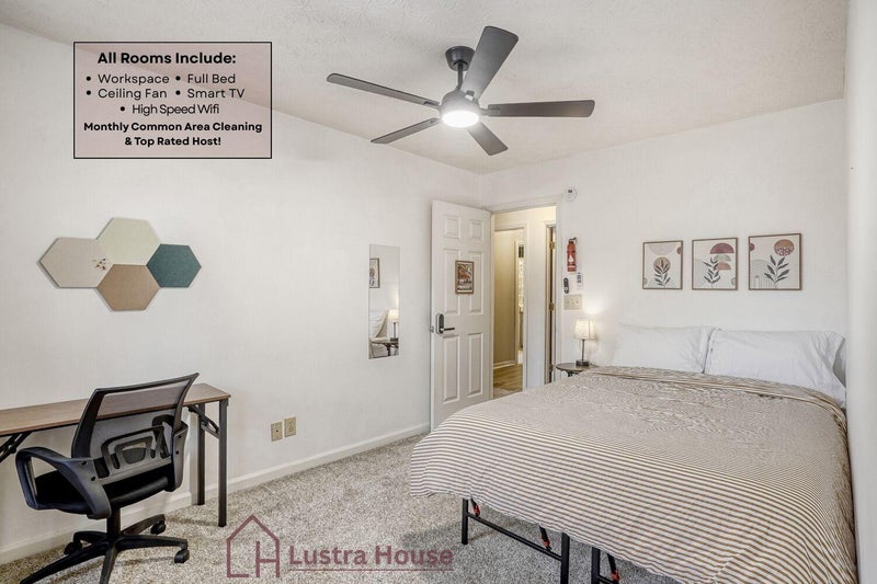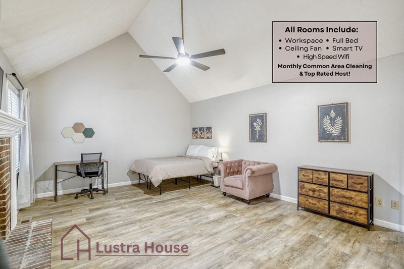 Private furnished room for rent. Your Private Space is Safe, Clean and Secure: Every bedroom is fully furnished with a Smart TV, dedicated workspace, dresser, and builtin closet or clothing rack. A Smart Lock keeps your space secure — no lockouts, ever. Just bring your linens and you're home. A Home To Be Proud Of: Common areas are professionally cleaned twice a month, and we provide household essentials. Labeled fridge and cabinet spaces keep things conflictfree. Every member is expected to clean up after themselves. A Community That Actually Works: We set clear expectations and enforce them. Members here are respectful, nodrama, and considerate of shared spaces. Responsive Management: Questions or concerns? We typically respond within minutes during business hours. Maintenance is handled quickly, and we genuinely listen to your feedback. We look forward to welcoming you to Meadowchase! $2 per week. Room rate includes all utilities, high speed WIFI, free laundry access, and Teladoc service. PROPERTY ID: 1