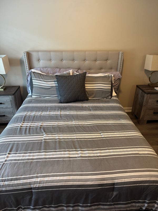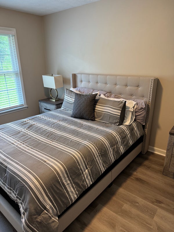 Hello. I have one large bedroom available with furniture included. Private full bathroom. Shared areas will be kitchen, living room, and outdoor space. Parking available in driveway. Nice quiet area, very clean home, and utilities are included.