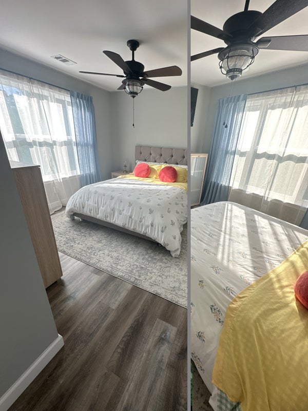 Bedroom 1: upstairs is furnished w/queen size bed, TV, and dressers. The bathroom is shared; however, the other room is empty (guest room) so really the bathroom is only shared if someone is staying in the guest room. Bedroom 2: 1st floor is a guest suite, also furnished w/queen size bed, TV, and dressers w/private bath. Ideal roommate is someone tidy, kind, and able to communicate. I am a trained therapist so I believe everything can be discussed so tension does not arise which may be common in shared living situations. There is also a large kitchen and the property is on 11.4 acres in a lovely country setting. It’s a serene feel, no door dash available out this far. Must love animals-I am willing to discuss animals but they have to mesh with mine. Couples are welcome for an adjusted fee of $100 on top of the rent for each room to account for the increase in utilities. Please feel free to ask any questions you may have. I’m really laid back and get along well with nearly everyone. Rooms are fully furnished but they can be emptied if preferred.