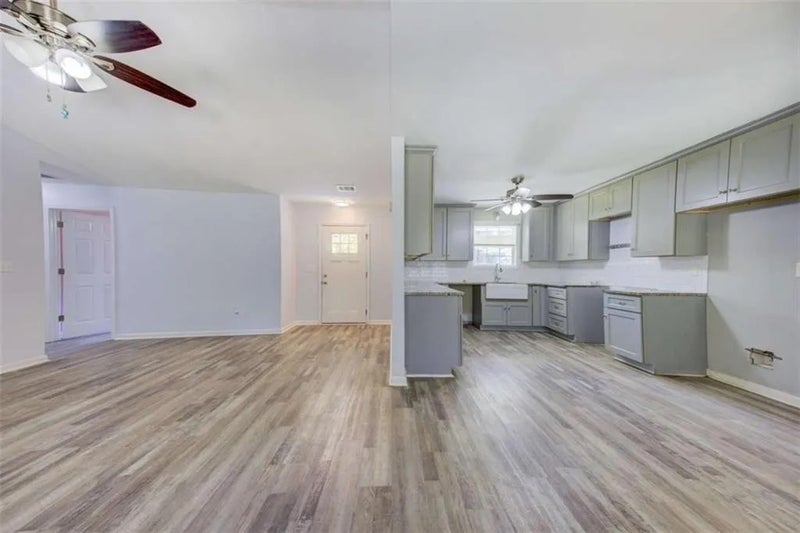 The spacious kitchen has soft close cabinets and drawers, a farmhouse sink and a new backsplash.