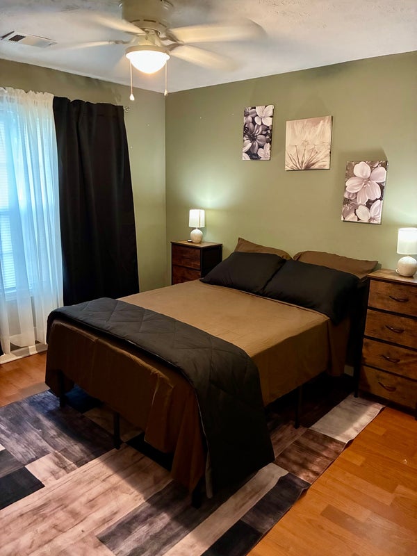 Cozy room in quiet home. Room completely furnished with TV. Access to all shared areas kitchen, dining room, living room, laundry area and patio.