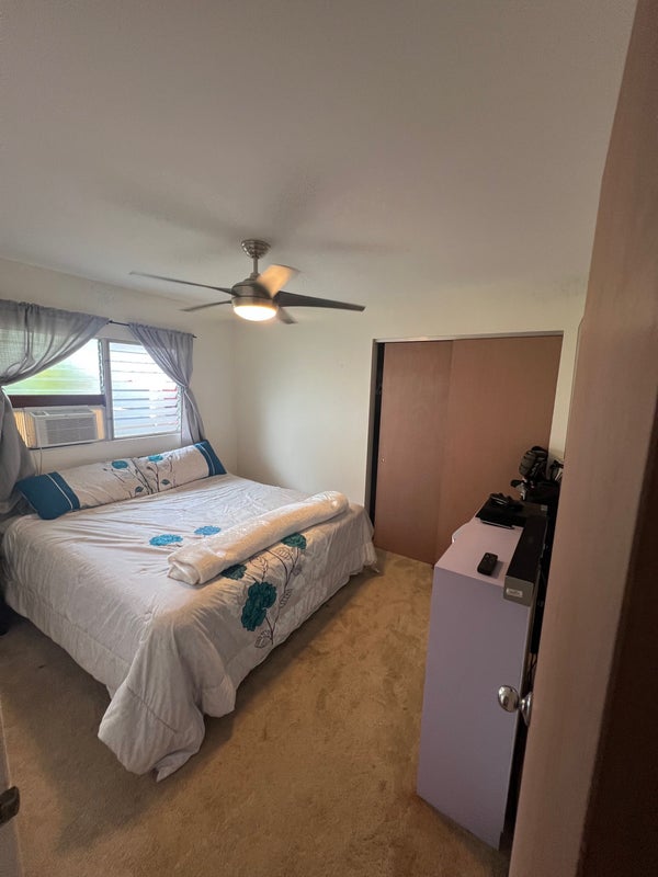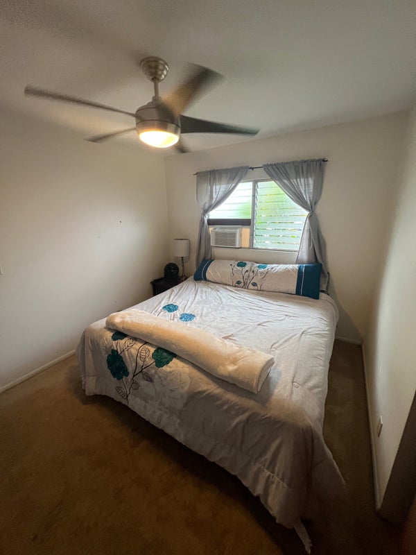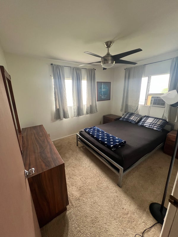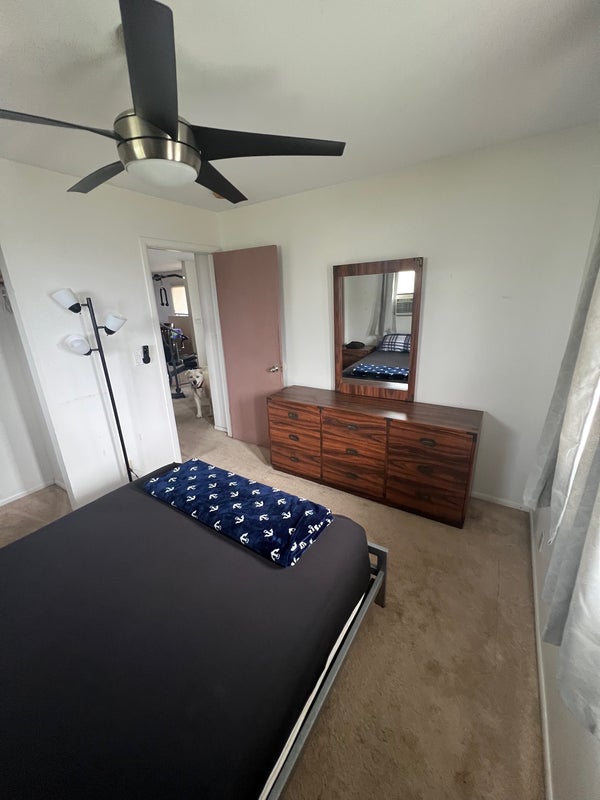 Two rooms available my house is in a safe and quiet neighborhood it’s in a cul-de-sac there’s a bed, dresser and nightstands in the room you’re welcome to use living room, kitchen and dining area. You have your own bathroom and one parking. i’m looking for someone who’s clean responsible and not a partier. The rent is 1325 a month and split all utilities and a deposit of 1325 as well, which can be split up in payments if needed. If both the rooms are rented out the rent and the deposit go down to 900.00. it’s located in Aiea close to bus stops restaurants and stores. I have a dog he’s 11 years old. He’s half husky half lab very friendly very mellow. The room is available now.