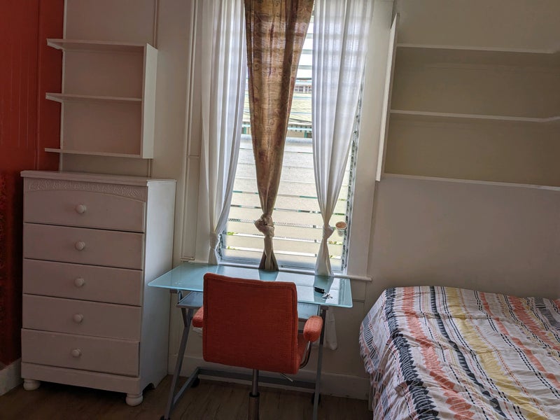 The room has fully furnished and closet with convenient furnitures. Including Bed with the blanket pillow, our desk, and a chair. The mini-refrigerator, microwave.